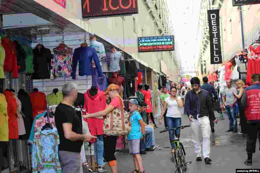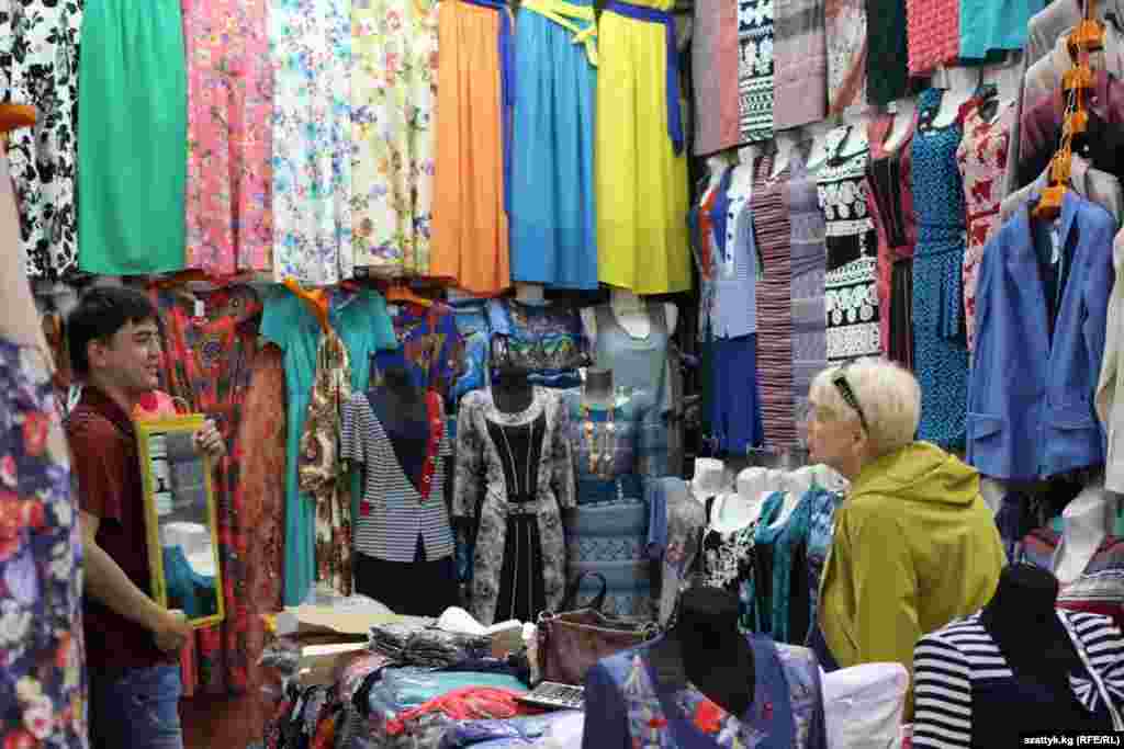 Расмий маалыматка таянсак, 2013-жылы Кыргызстанда тигилген кийимдердин 95 пайызы чет жакта, көбүнчө Орусия менен Казакстанга кеткен. Акыркы эки-үч жыл ичинде Москванын чоң базарларында жалаң гана Кыргызстанда тигилген кийимдерди сатуучу дүкөндөр ачылган. Орусиядагы сатуучулар соңку кезде Made in Kyrgyzstan эн белгиси менен чыккан кийимдердин сапаты начарлаганын айтууда. (Асхат Акматовдун сүрөттөрү)